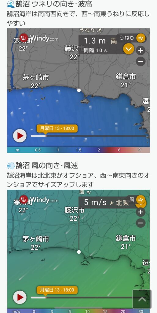 祝日月曜日の夕方、台風うねりの鵠沼ビーチに出撃。