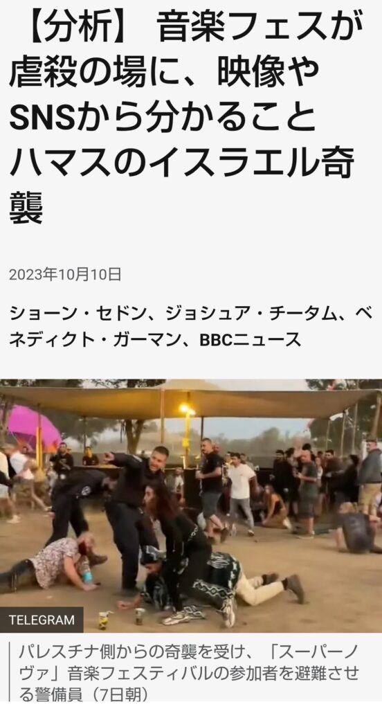 なんか一方的にイスラエルが悪で悪い悪い悪魔国みたいな扱いで、日本のマスコミ報道は何故か国境侵入してコンサート会場襲撃して虐殺&イスラエル国民拉致した極悪ハマスのことは触れない不思議。