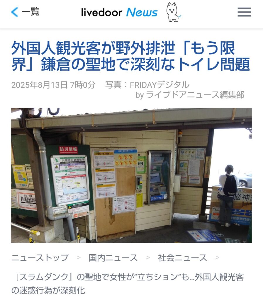 鎌倉高校前に押し寄せてるアジア各国からの観光客さんたち、トイレ無いからって⋯
