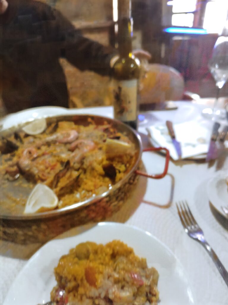 で、注文しといてくれたパエリア食べに、村のバルへ。