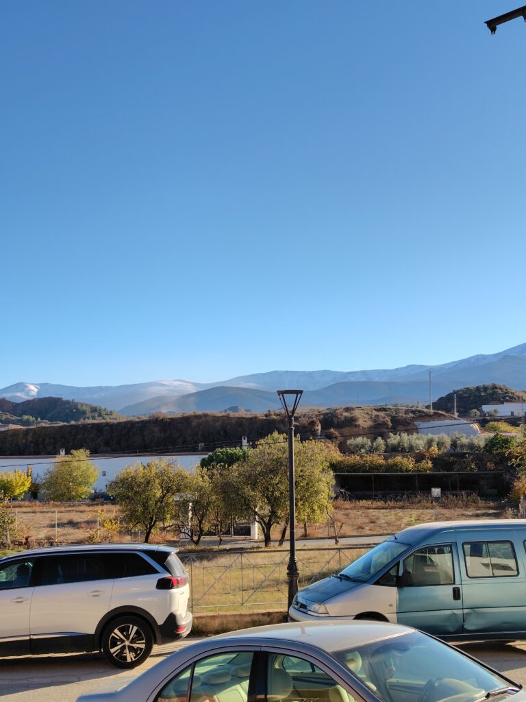 少し窪んだエリアの畑があるけど、一部からは雪被ったシエラネバダの高い部分も見えるしねー。