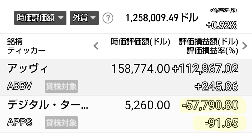 ⇧の「デジタル・タービン【APPS】」なんて、あくまでもみなし損だけど、▲57790ドルって、ざっくり900万円のマイナスだかんね、えっへん!