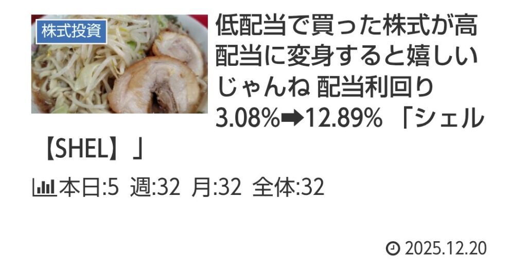 こないだ、石油メジャー「シェル【SHEL】」の、実際の購入額ベースでの最新配当利回りを確認したじゃん。