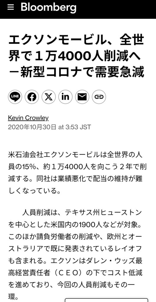 ちなみに、エクソン・モービルは超赤字だったコロちゃんパニック暴落の年も、減配しなかったの。カッコいい〜!