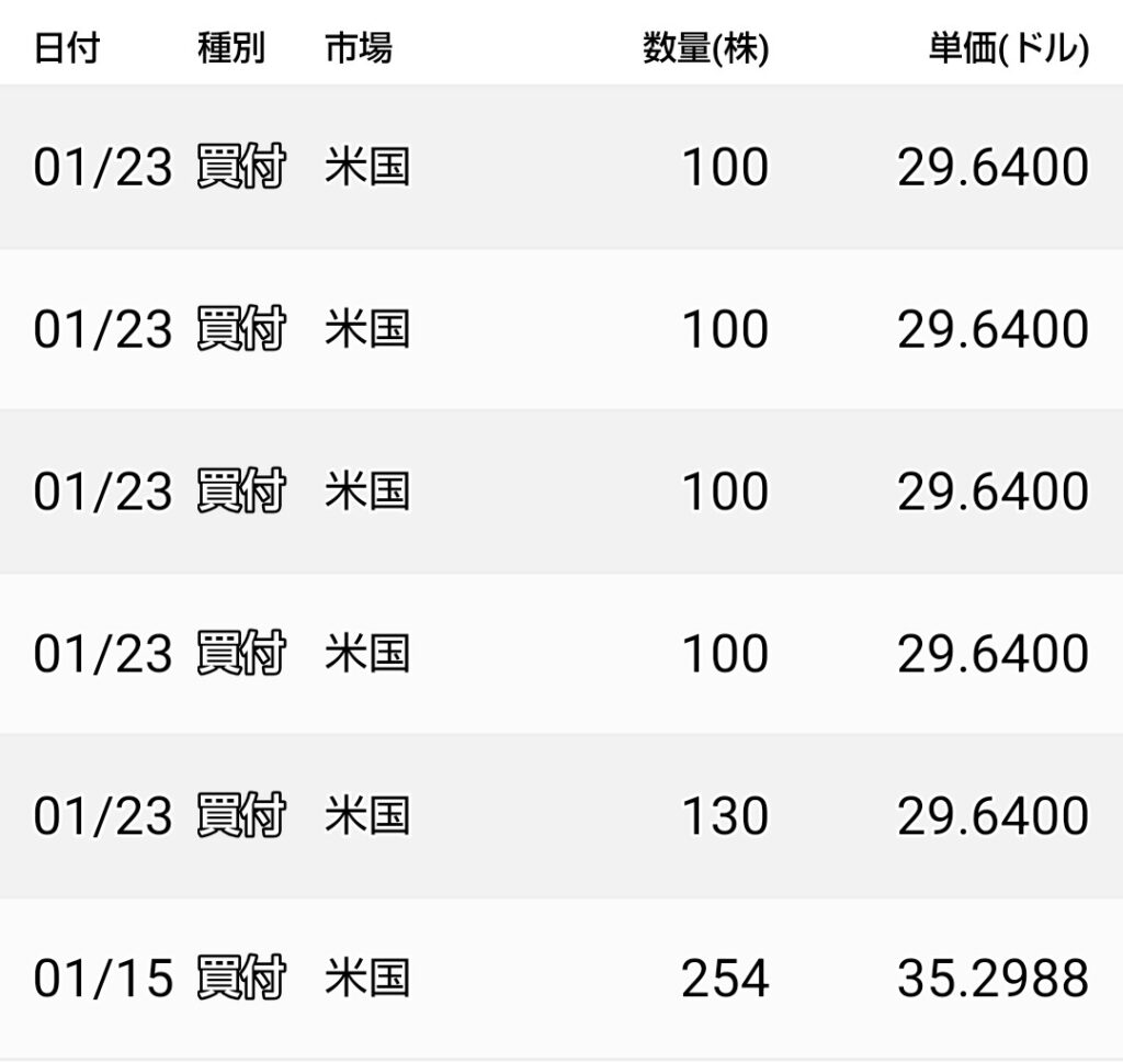 2024/1/23 新NISA枠で538株、一株29.64株で買ったから、15946$相当。当日ドル円相場は148.15円/$だったから、手数料込みで購入額は2386K円。