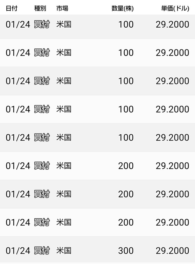 2024/1/24 特別口座で1500株、一株29.20株で買ったから、43800$相当。当日ドル円相場は148.17円/$だったから、手数料込みで購入額は6555K円。