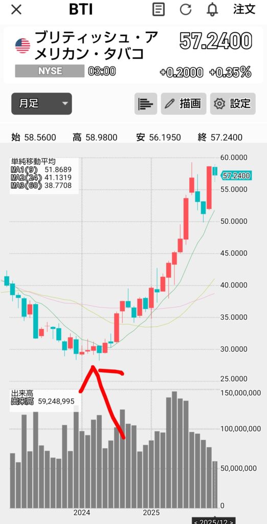 そう、ほぼ2年前の2024年 1/23に株主になったイギリスに本社があるタバコ会社「ブリティッシュ・アメリカン・タバコ」なんだけど。