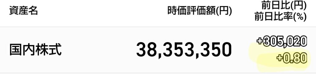 日経平均は+2.50%以上アゲアゲなのに、僕の保有してる日本株は+0.80%。
