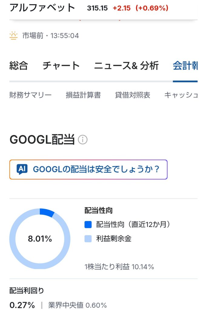 グーグルが無い世界なんて、グーグルマップやらに無料でお世話になってる僕には想像したくないけど、広告料やらで大儲けしてるグーグルだって実質無配に近いし。