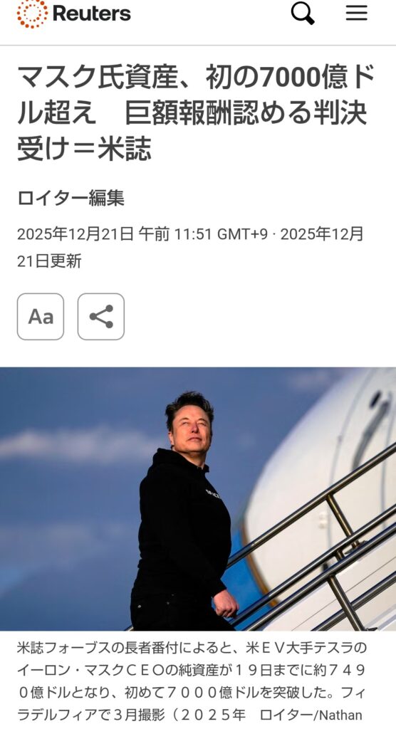 テスラとかのCEOイーロン・マスクさんの巨額報酬とか極端な例だけど。