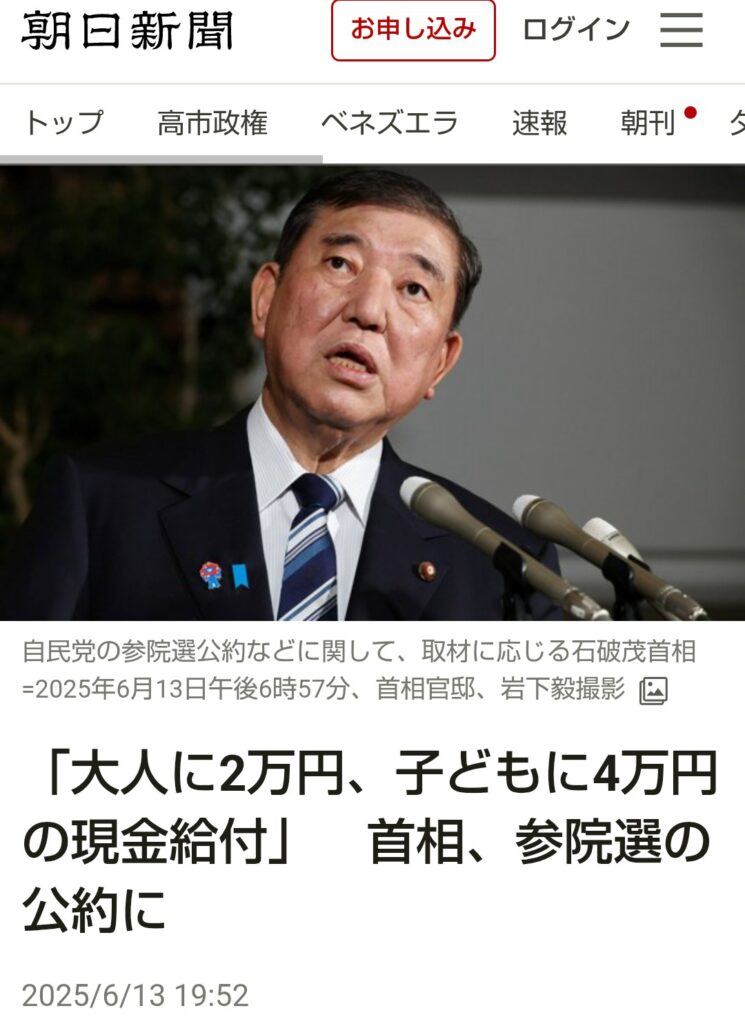 「物価上がりすぎだから補助金よこせー」とか、「現金給付するから投票よろしこ」とか、
