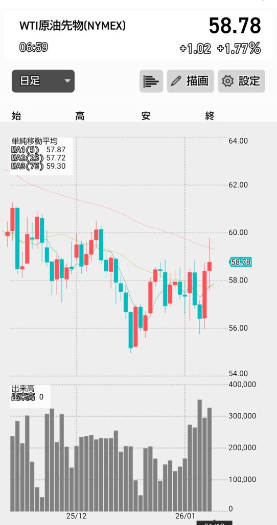 WTI原油先物価格が60$割れしたままだったり、