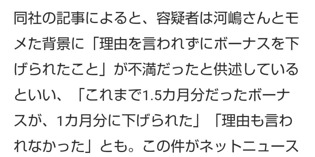 給料減って社長殺したお兄ちゃんと、インフレで実質給与所得が減ってるのにストライキも転職もせず無言のリーマン、どっちがマトモなのかワケわかんないけど。