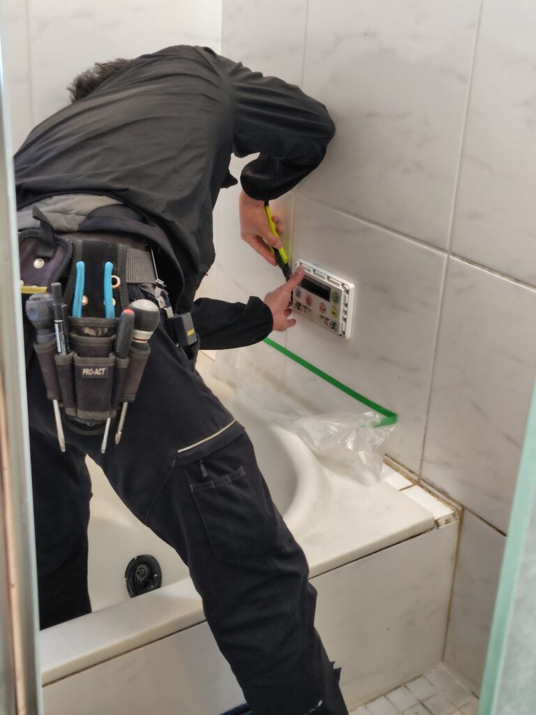 既存設備の解体・運び出し速やかで丁寧で、ゴミ全く残さないし、リモコン交換の屋内作業も綺麗なスリップ持参だし