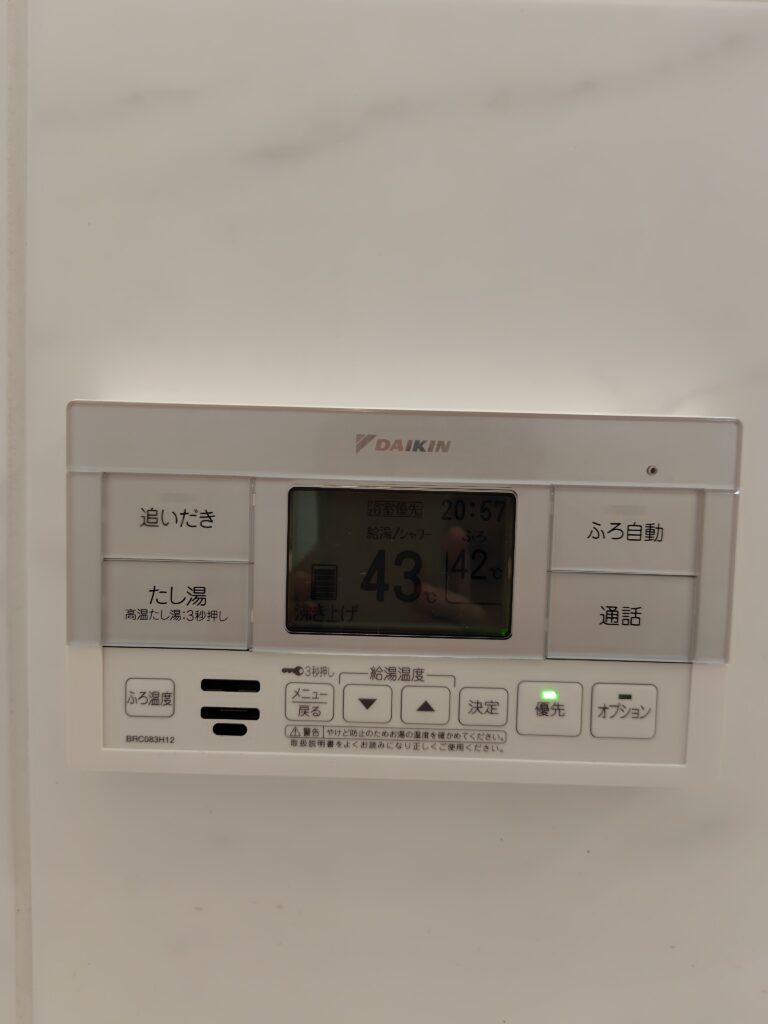 エコキュートなる、夜間電力でお湯沸かして給湯する設備がついてて。お風呂とかシャワーとか台所のお湯とかお世話になってるの。