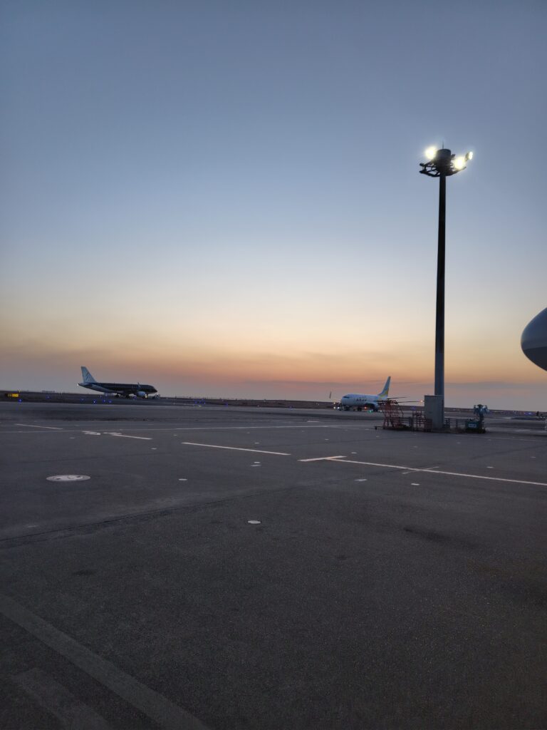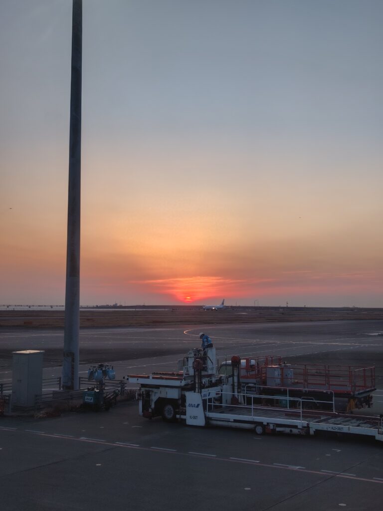 朝日浴びる瀬戸内海を越えたら、高松うどん空港。定期運航。