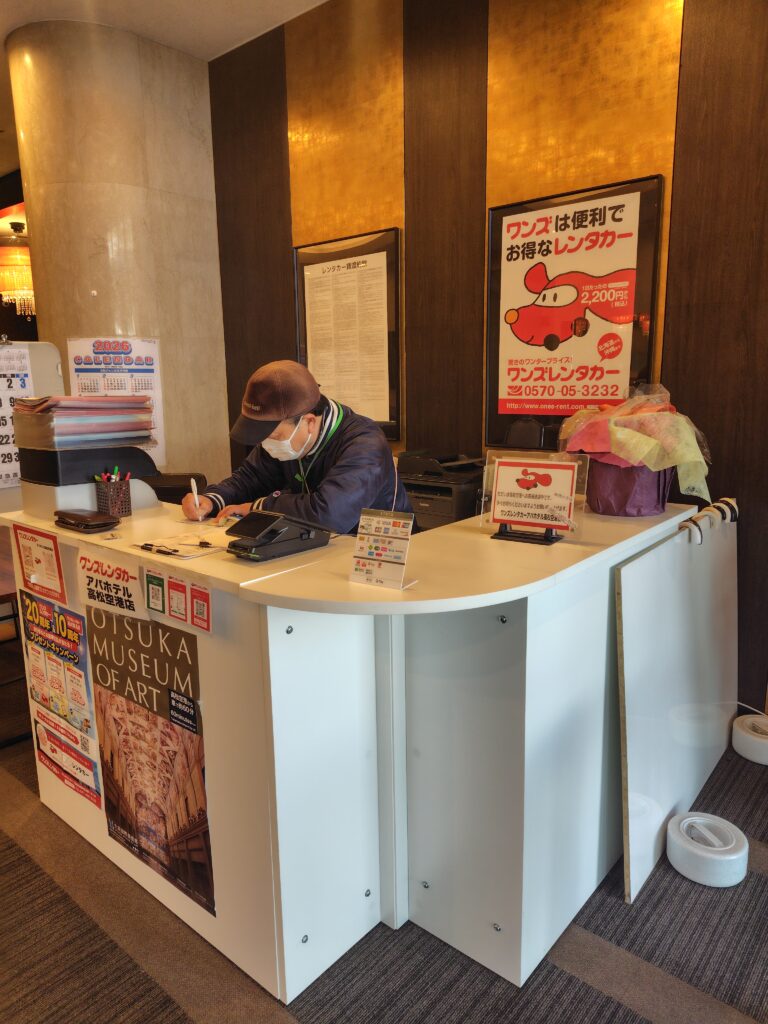 今回、どこもレンタカー高くって、最安値だったオンボロ中古車レンタカー会社のワンズレンタカー。