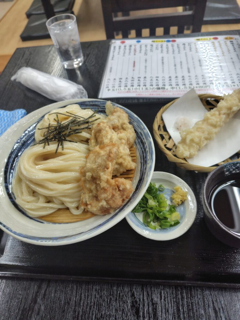 硬すぎす絶妙なモッチリ感とシコシコ感、艶かしさもある冷たいうどんも素晴らしいし、揚げたて鶏天も美味しいし。