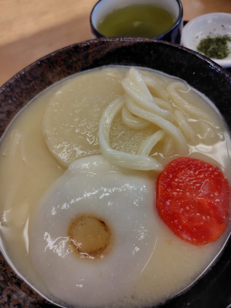 むむむ、圧倒的に個性的なウドン、ってかお正月のお雑煮じゃんね。