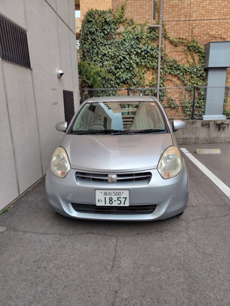 空港近くのアパホテルにオフィスがあって、超オンボロ傷だらけの走行距離10万キロパッソで、さあ出発。