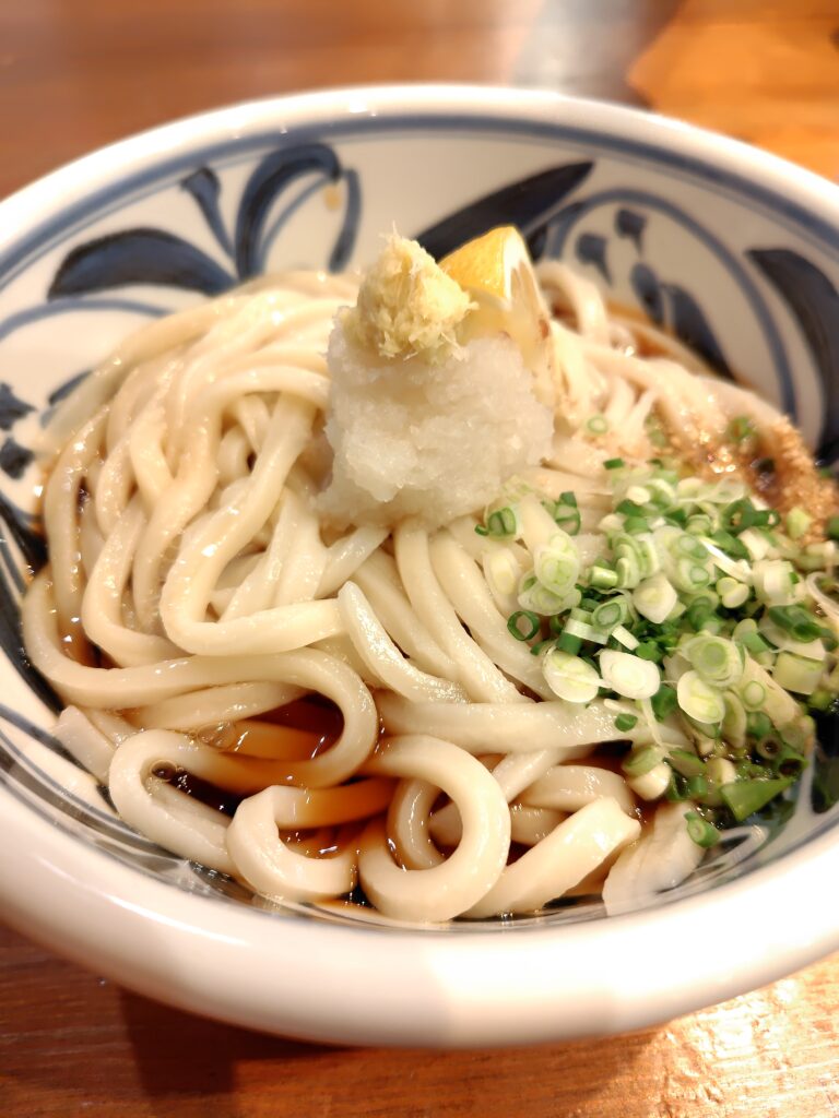 2軒のワインバーでそこそこ食べたから、サッパリとおろし温ぶっかけうどん。