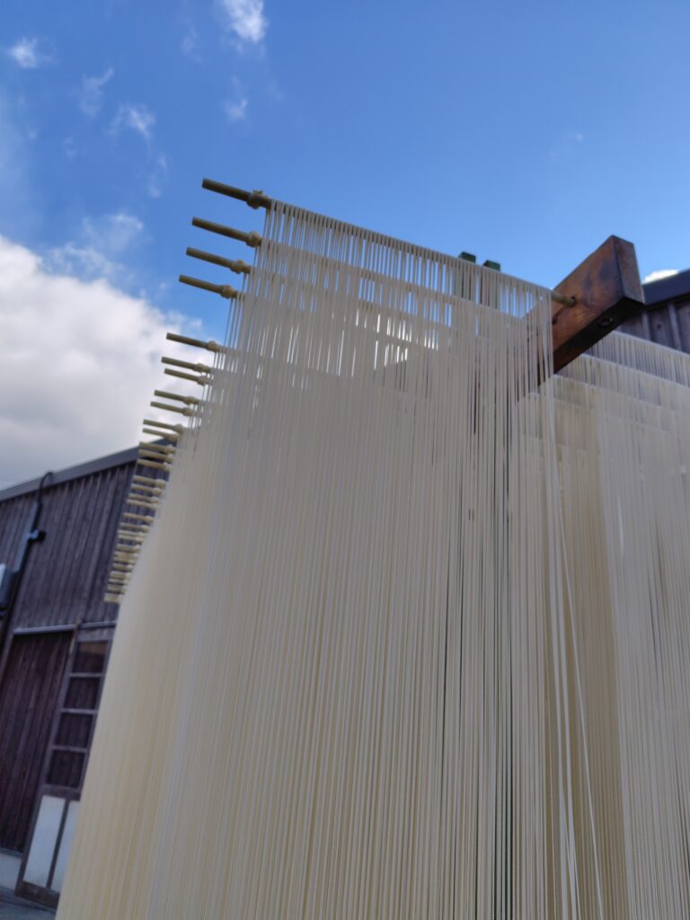 乾いた風の強い日、ゆらゆら揺れるそうめん、美しい〜!