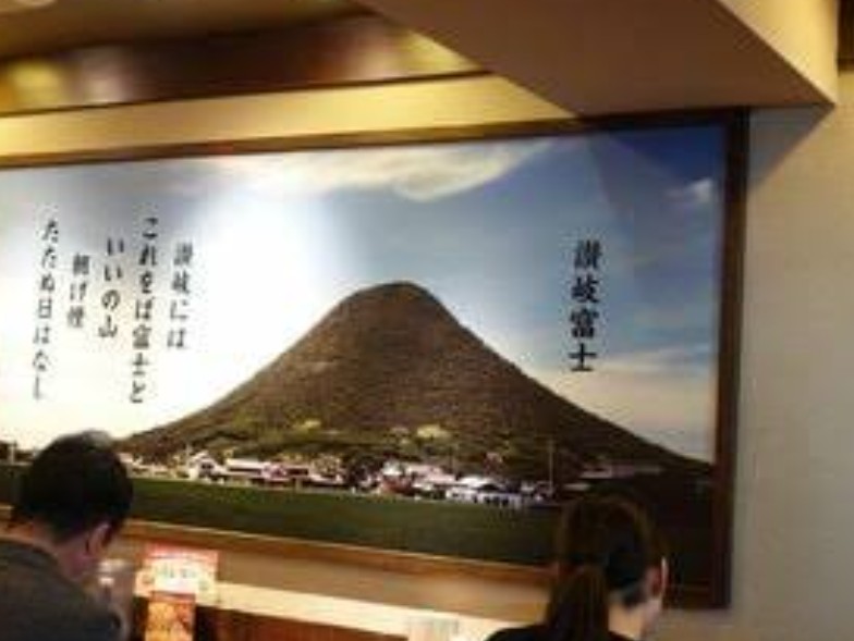 丸亀製麺の店内に描かれてる飯野山(讃岐富士)を眺めつつ、