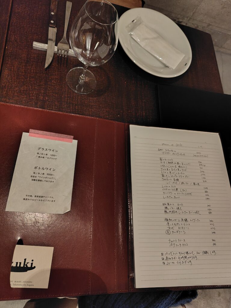 ここ「azuki.」の営業時間は、まさにこの「うどん巡礼の休憩時間」にオープンしちゃう恐ろしさ。さすがはうどん王国のワインバー。