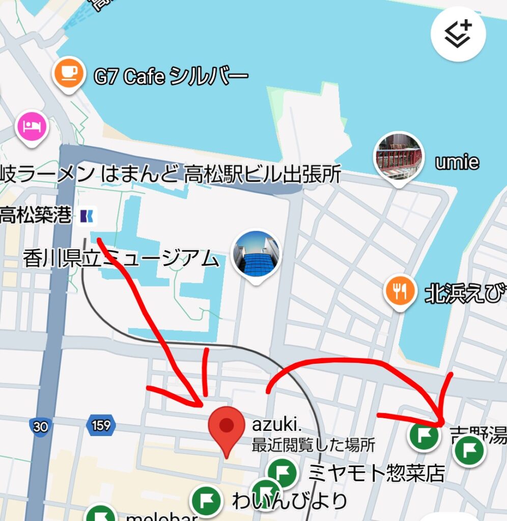 ⇧高松中心部の北側(海側)なんだけど、みんな大好きな琴電の終点駅 高松築港から徒歩10分なの。