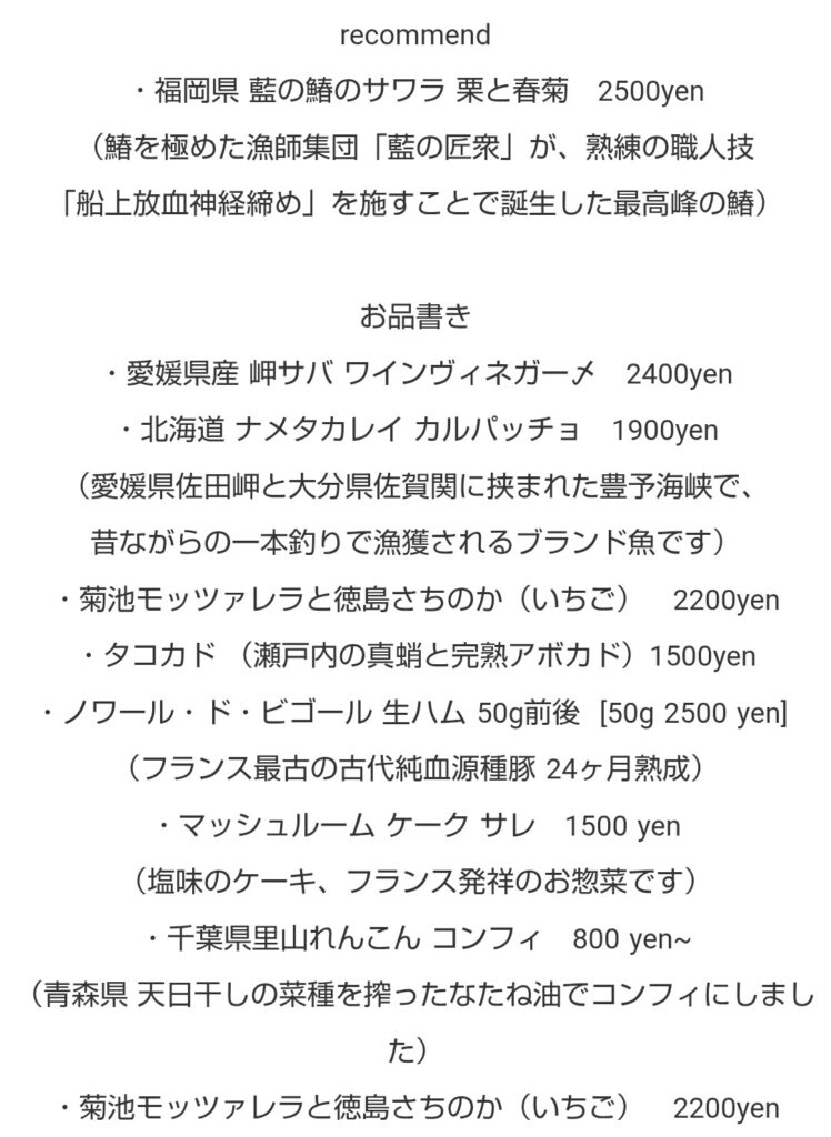 こんなメニュー、ワインバーじゃないじゃんね。