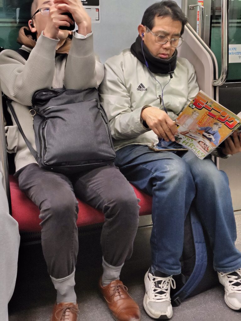 あ、東海道線で久々、紙雑誌の週間モーニング読んでるオッサン発見。