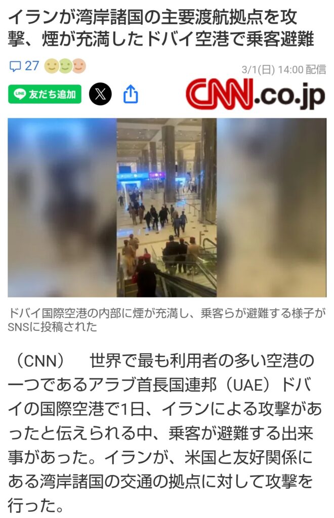 中東経由の飛行機が全便欠航どころか、空港自体がドローン攻撃で