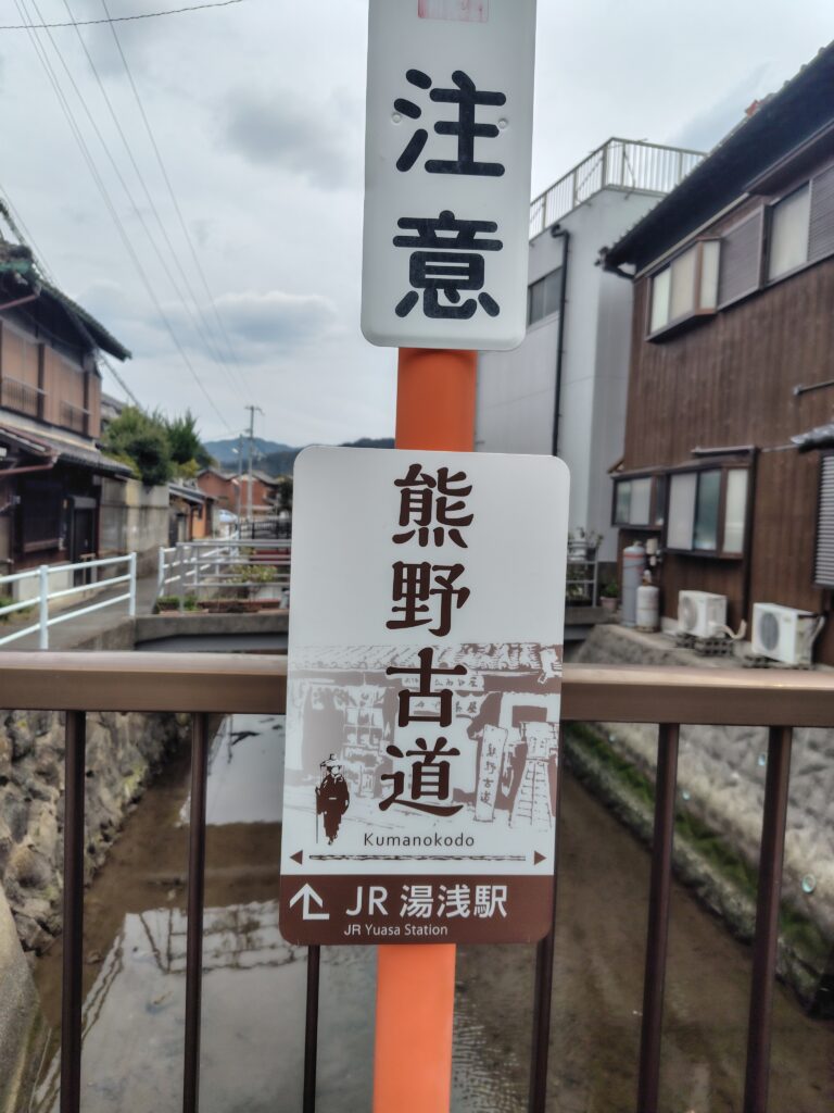寂れた町を歩いてると、ところどころに熊野古道の文字が。