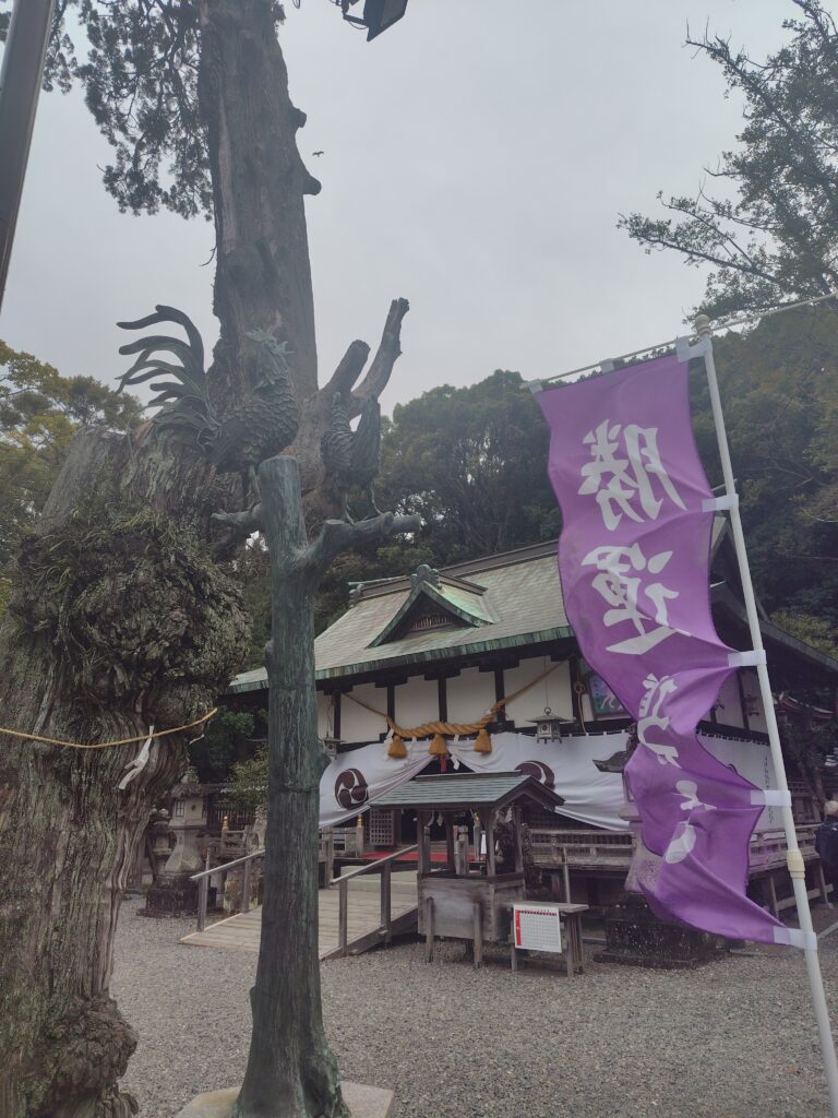 いちおう世界遺産の一部の闘鶏神社お詣りして。
