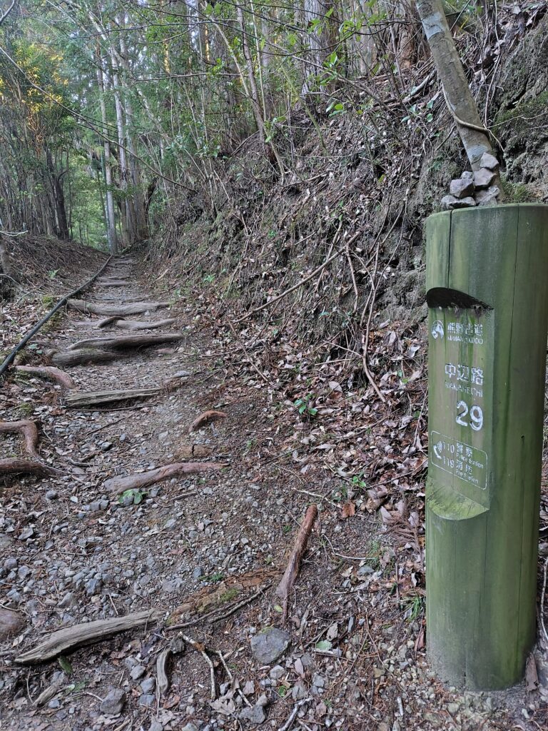 がけ崩れで迂回になってた岩神王子周辺は改修工事完了してて、オリジナル古道をひたすら上り下り。