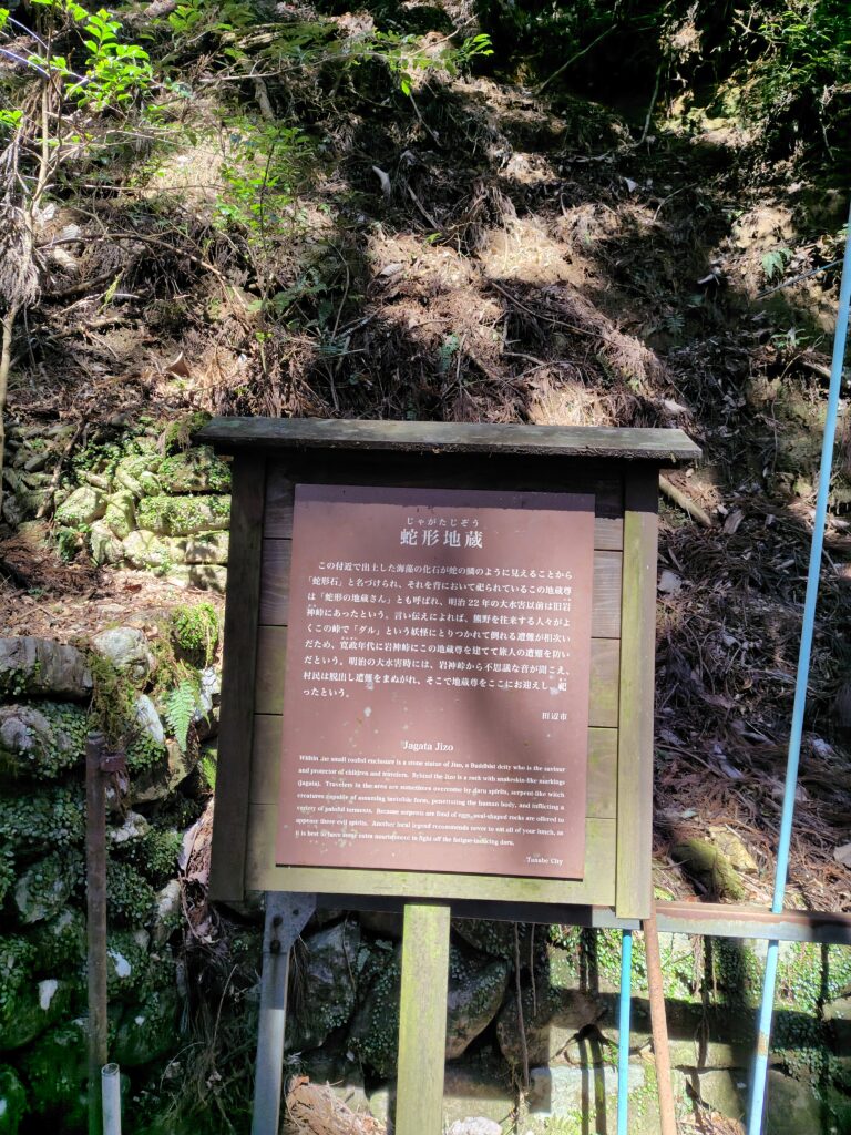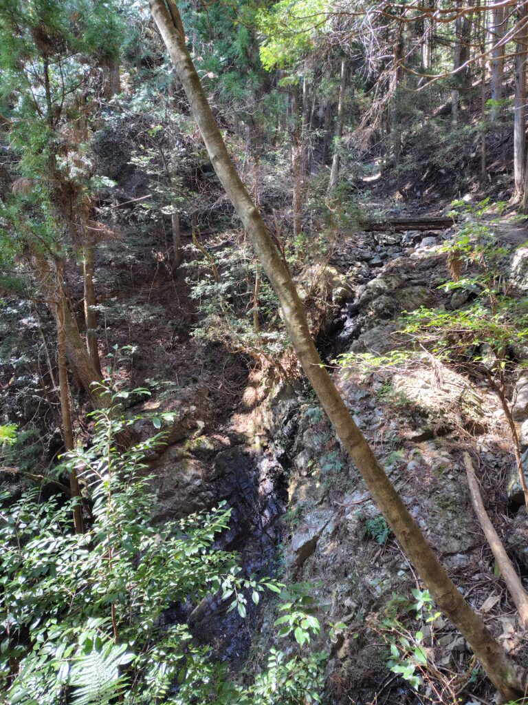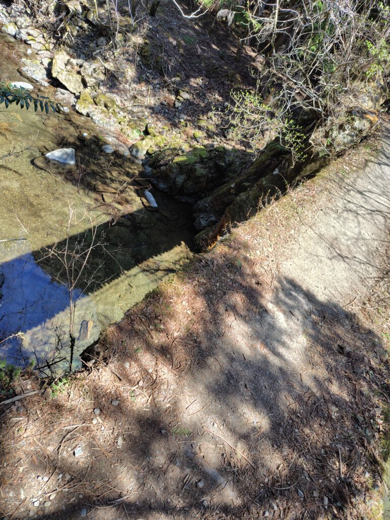 けっこう細い崖っぷち古道が続いて、高所ニガテな僕には…
