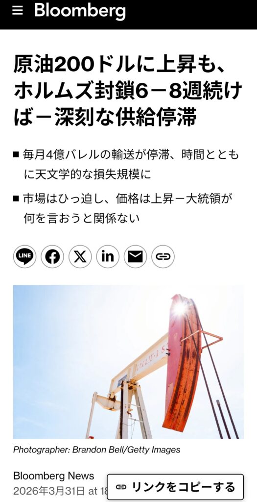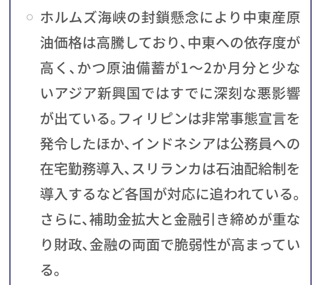 石油備蓄量が比較的多い日本はまだ「値上げは困るー」とか「ナフサ入荷が減るから減産で困るー」みたいな自分勝手な報道が多いけど。