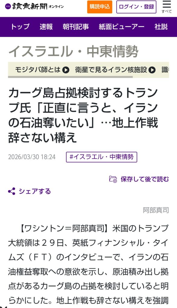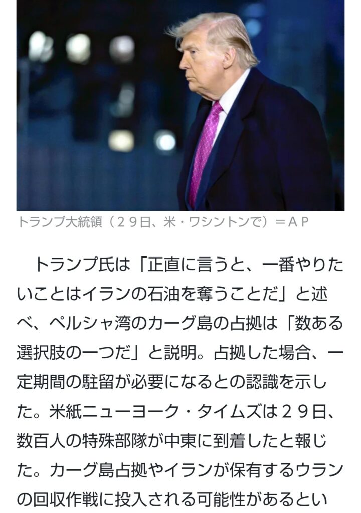 脳みそ機能停止してるETF真理教信者さんたちは、「へー、イランの石油を奪いたいんだ、トランプ」とかって左翼マスコミの誘導通りにノータリンな反応したりするわけだけど。